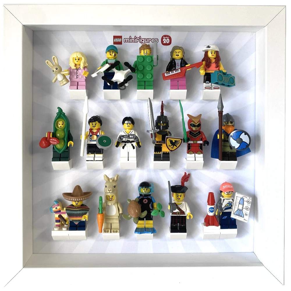 - This handmade Minifigure Display Frame/Case can hold 16 minifigures or custom layout.